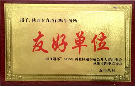 2015年8月荣获咸阳市跆拳道协会“友好单位”称号