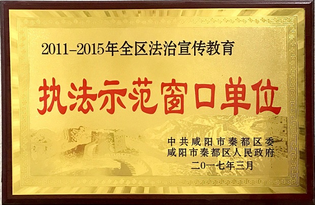 2017年3月荣获中共咸阳市区委、咸阳市秦都区人民政府“执法示范窗口单位”称号