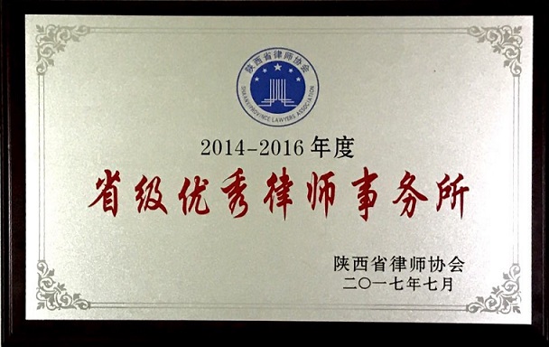 2017年7月荣获陕西省律师协会“省级优秀律师事务所”